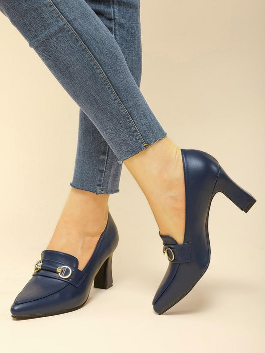 Regular price $28.00 USDRegular priceUnit price / per$34.00 USDSale price $28.00 USDMetal Decor Point Toe Chunky Heeled Loafers