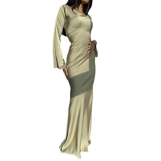 Ladies Elegant Dress Solid Color Asymmetric Collar