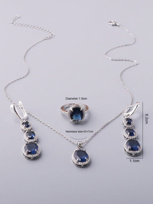 3pcs/set Cubic Zirconia Decor Jewelry Set Gemstone Charm Necklace