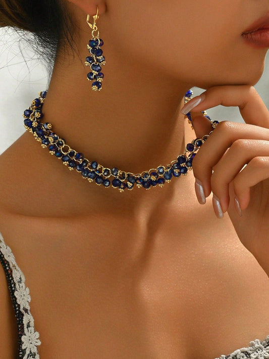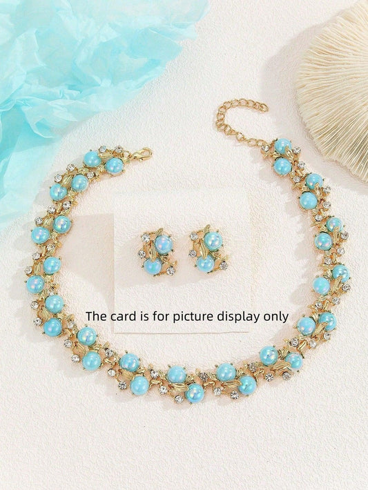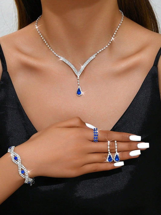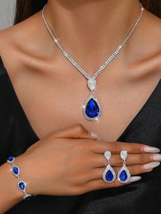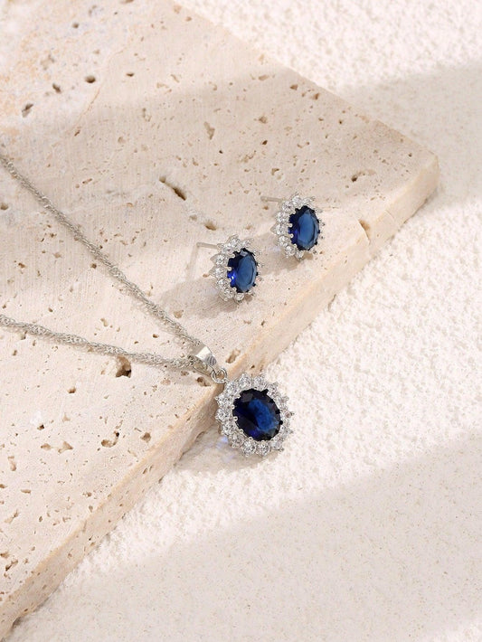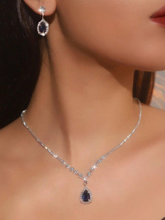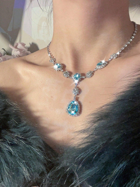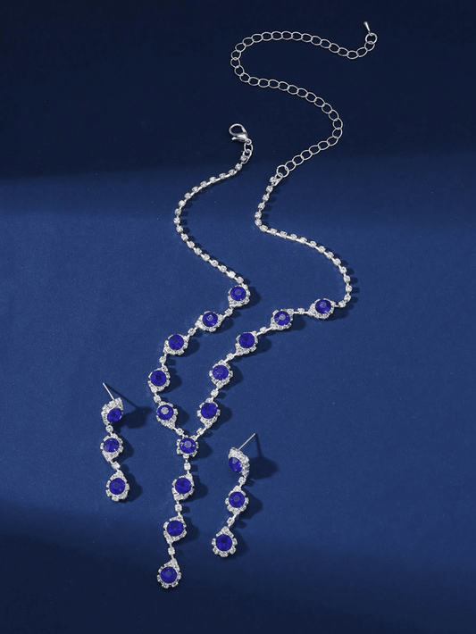 Women's Elegant Jewelry Set Sparkling Blue Rhinestone Necklace