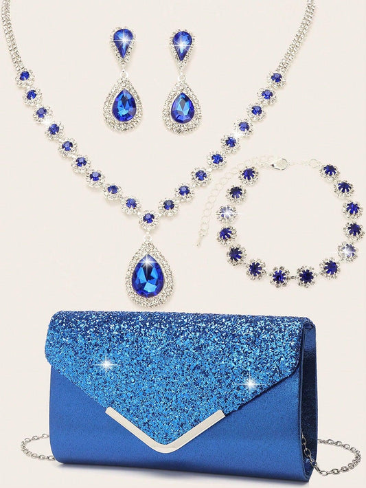 Regular price $26.00 USDRegular priceUnit price / per$32.00 USDSale price $26.00 USD4 Pieces Rhinestone Ear Clip Bridal Wedding Choker Bracelet Dangle Set Bling Glitter Purse Women Rhinestone Evening Clutch Bag Glitter Glitter V-Shaped Hardware Embellished Flap Elegant Envelope Bag Bridal Wedding Bag
