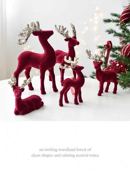 5/4/3/2/1pc Christmas Glitter Wine Red Flocking Deer Pendant, Red Table Size Elk Pendant, Can Be Used For Home Decoration, Centerpieces, Valentine's Day Gifts, Christmas Gifts ,Creative Home Table Decoration,Mother's Day Gifts, Wedding Goodies, Home Deco