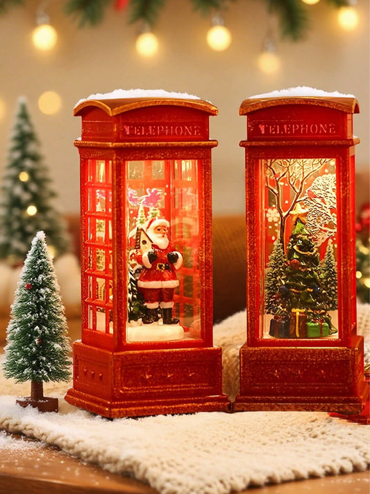 Cirelle 1pc-Christmas Style Led Tea Lamp Festive Christmas Phone Booth Decoration With Santa, Snowman,Tree Scenes Battery Operated, Illuminated Red Cabinet For Holiday Fireplace Or Cabinet Display,Christmas Parties Decoration,Candleholder, Night Light, T