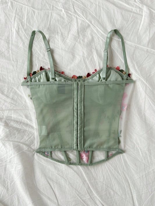 Soleia Plus Size Resort Fishnet Embroidered Green Bustier