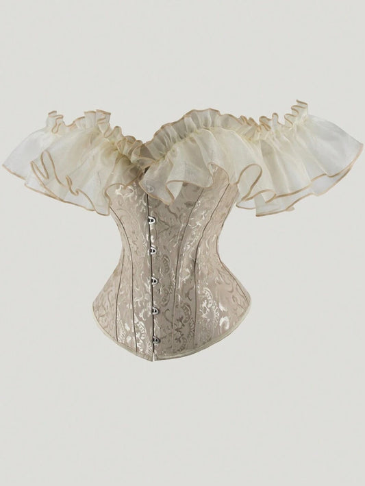 Ruffled Sleeve Sexy Corset Bustier Shapewear Top, Palace Style Waist Cincher Shapewear Top For Women
