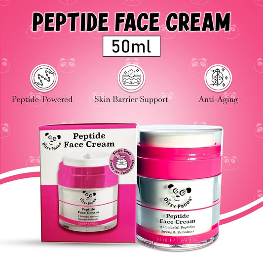 Dizzy Panda 4-Piece Skincare Bundle with Peptide Face Cream 50ml, Soft Glow Gel Lotion 50ml, Brightening Toner 145ml, Crystal Glow Cleanser 100ml & Cosmetic Bag - Packed by ADAM DEALS - Christmas Gift