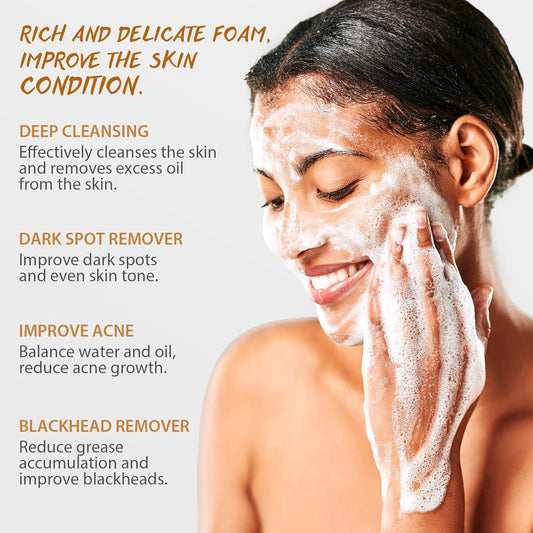 Kojic Acid Soap, Turmeric Soap Bar, Dark Spot Remover for Face and Body, Moisturizing Vitamins C Soap for Acne Blackheads Remover, Hyaluronic Acid for Deep Cleansing, with a Mesh Soap Pouch (3x100g)