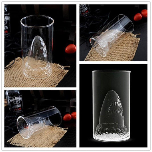 Transparent Glass Cup Shark Glass Wine Milk Tea Water Breakfast Cup Mugs Double-layer Bar Wine Drinkware